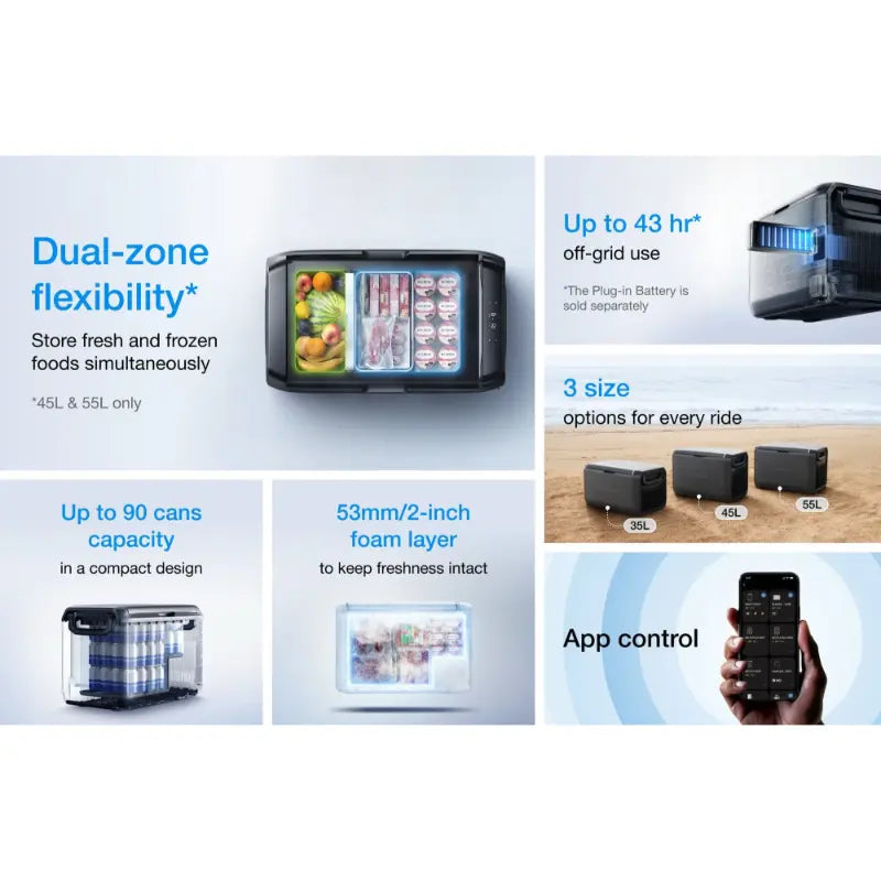- Extended Off-Grid Operation: The 298Wh Plug-in Battery maintains items at 4 °C for up to 43 hours (35L) or 39 hours (45L/55L).
