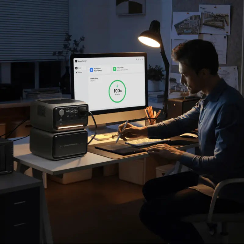 Need more power? Simply expand the capacity up to 858Wh by stacking the EB300 (286Wh) or EB600 (572Wh) extra battery—wirelessly connected with no tools required. Compact, portable, and powerful, the RIVER 3 Plus adapts to your growing energy needs.