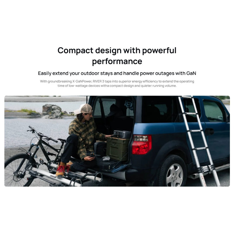 - Car - Charge RIVER 3 using your car battery while you drive, making it an ideal choice for on-the-go.