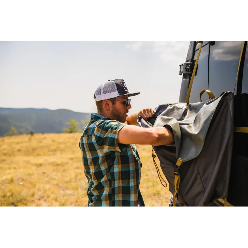 Make every outdoor adventure cleaner and more sustainable with our new vehicle-mounted accessory, Trash Pak. Easily haul a weekend's worth of waste and recycling, and keep your campsite clutter-free. No need for dumpsters or camp hosts, just use the interior loops or sort at home. Rinse out for easy clean up.