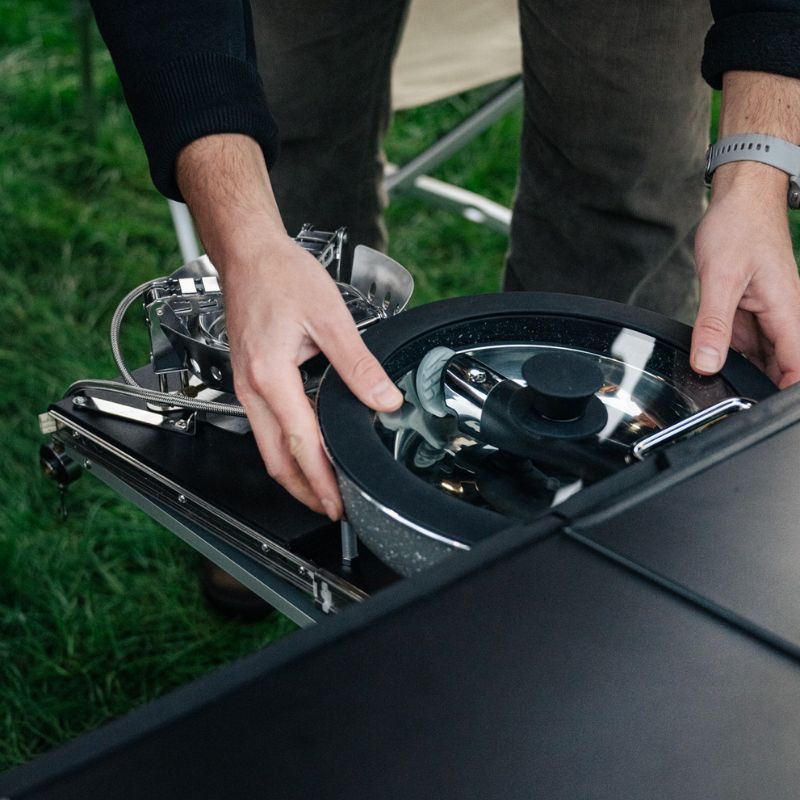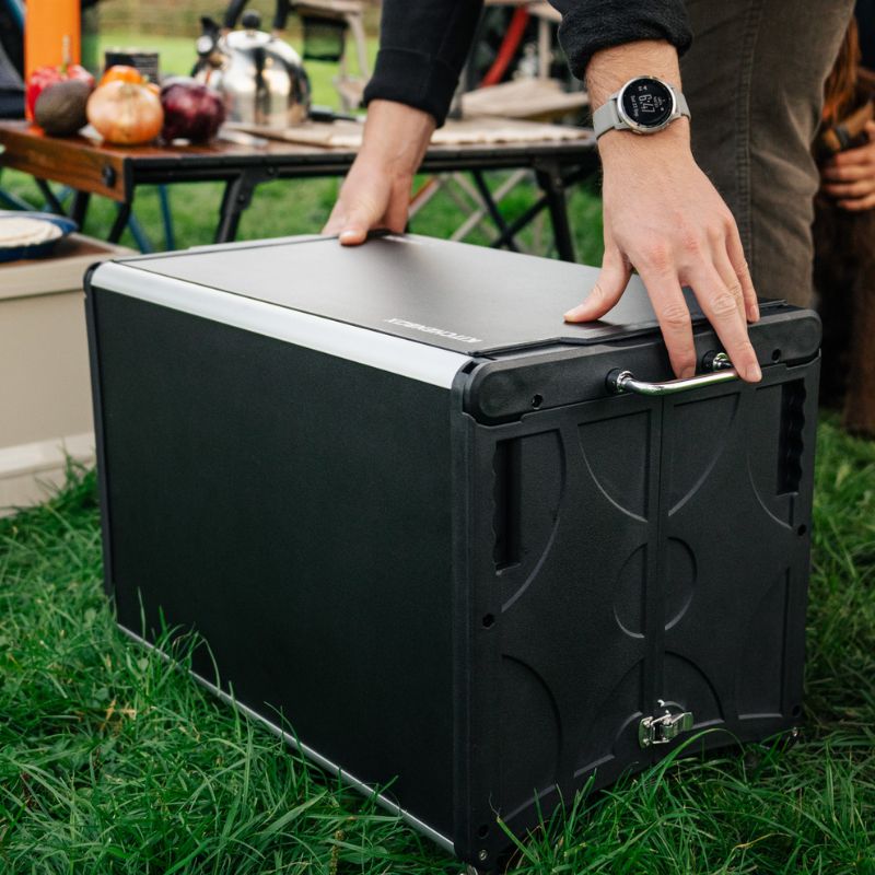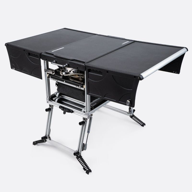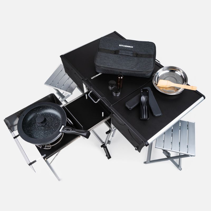 The KitchenBox is a hassle-free kitchen built into a compact box. Easy to carry and designed to fit in your car boot, it sets up in seconds and includes everything you need to cook and enjoy delicious meals.