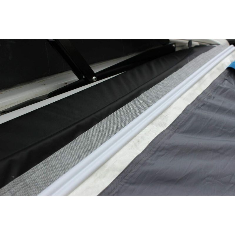 Simply attach the magnetic strip to the top of your vehicle in the desired position, hold the cowl up to the other side of the strip and then thread the 'Figure of 8 Strips' onto both awning piping. Alternatively, thread the awning piping to the strip, before attaching to the roof of the vehicle.