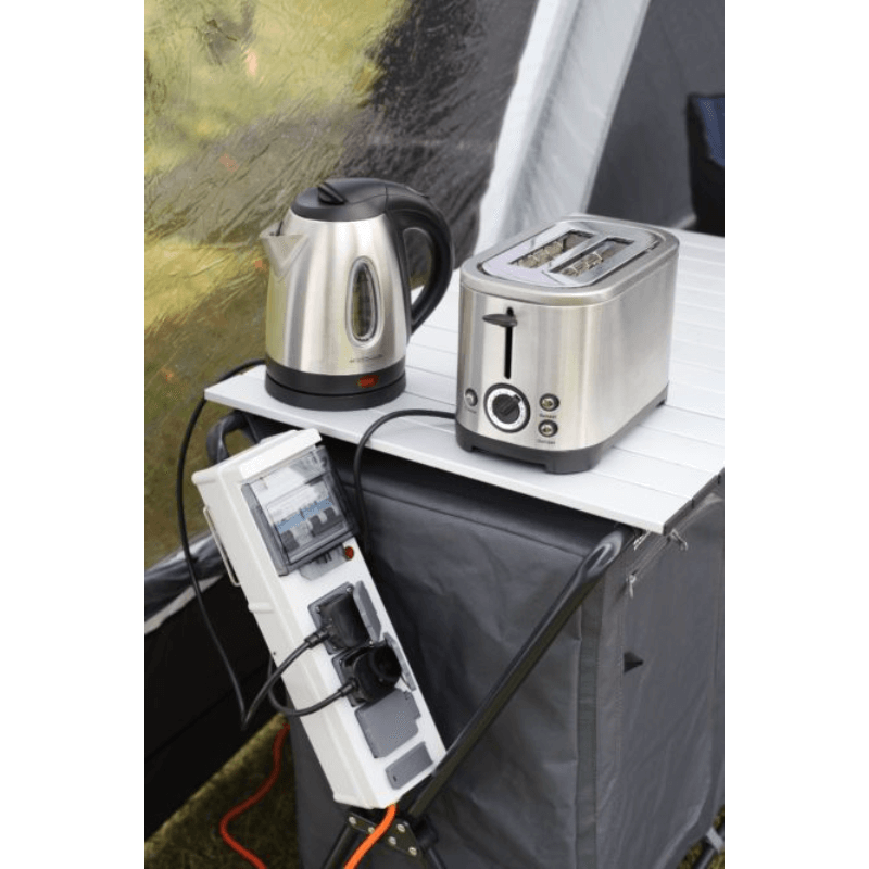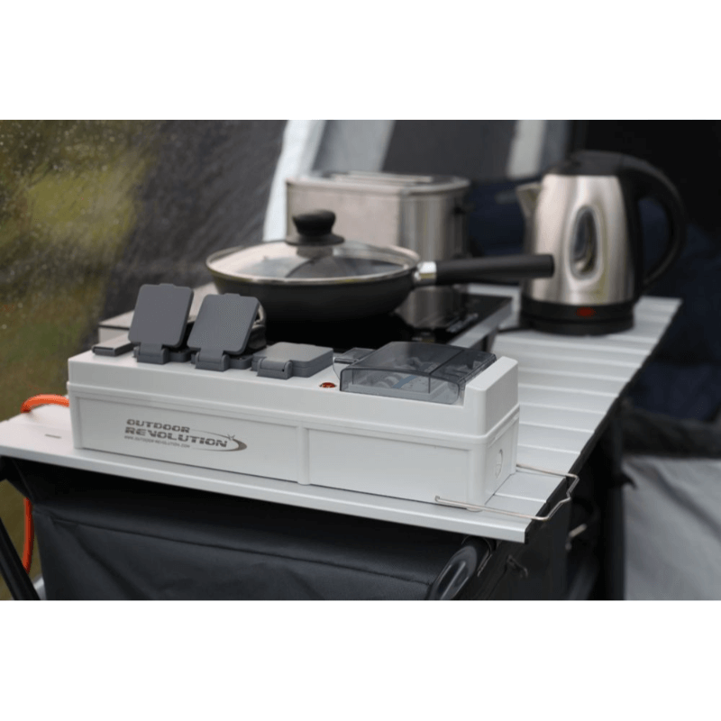 The Brand-New Outdoor Revolution Mobile mains power unit, with 2 built in USB Ports is the perfect way of providing mains electricity into your tent/awning. Featuring 15 meters of waterproof cable and a splash proof mains unit (that will be inside your tent/awning) 3 x UK sockets with RCD protection and 2 USB ports, it’s the perfect way of charging your phone/tablet or running your heater and toaster.