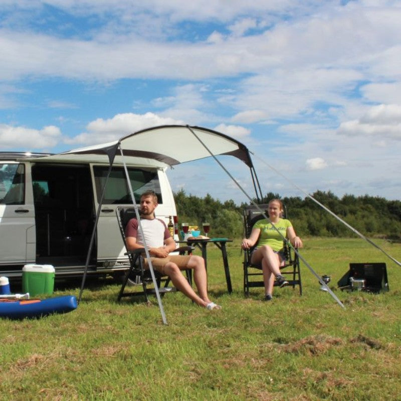 The revolutionary Movelite Canopy Retro Connector is an indispensable optional extra for owners of the Movelite Canopy, permitting the direct attachment of this porch extension to your campervan or motorhome, creating a large utility space, where you can comfortably relax or cook during adverse weather conditions, with complete protection against the elements; perfect for use as a temporary area for unwinding after a long evening, when you may be reluctant to immediately pitch your Movelite drive away awning.