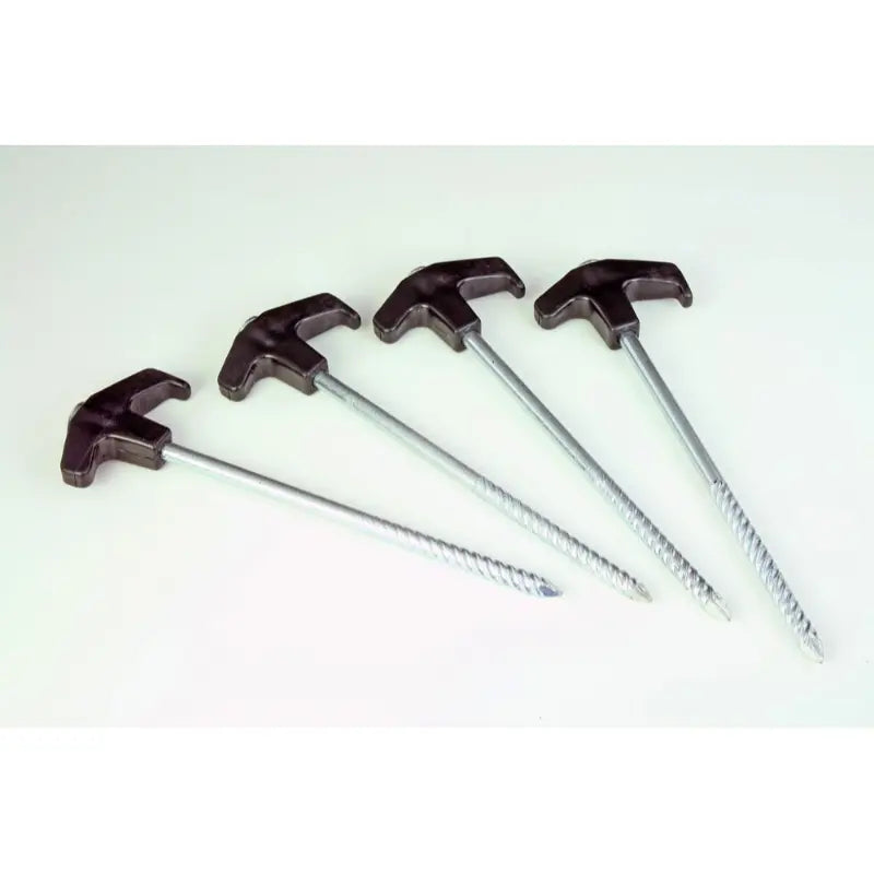 - Thick steel pegs with corkscrewed shaft for extra grip