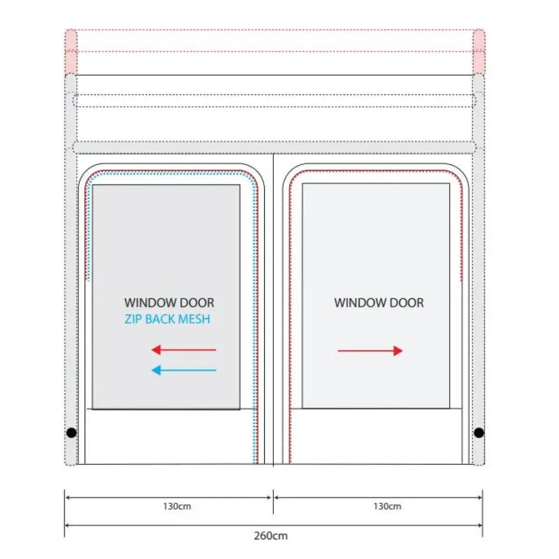 - Zip out left and right side doors with zip back Phoenix mesh panels.