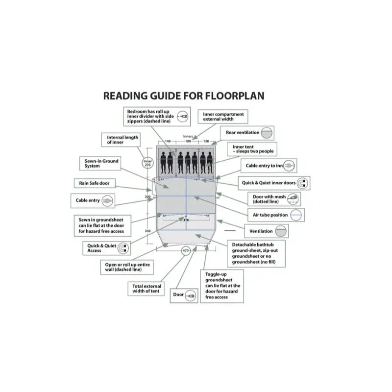 - Heavy duty Outwell zips are easy to use, running securely and freely.