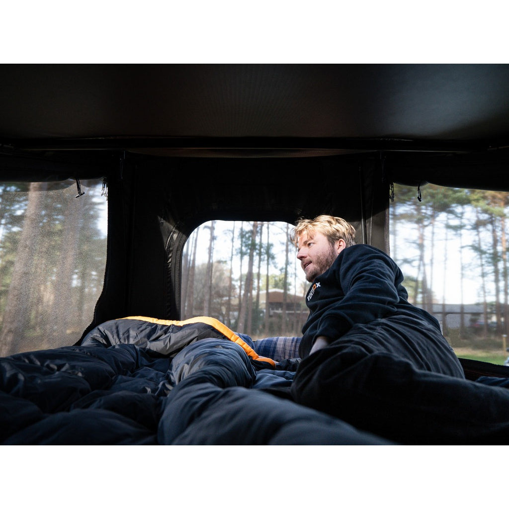 Introducing the world’s lightest rooftop tent. At just 33kg, the TentBox GO is the ultimate in innovative, lightweight design. It comfortably sleeps 2 people, with integrated storage pockets and a large zippable skylight. Once installed, setup takes just 60 seconds, so you’ll always be ready for adventure. Arriving conveniently flat-packed, initial assembly and installation takes around an hour.