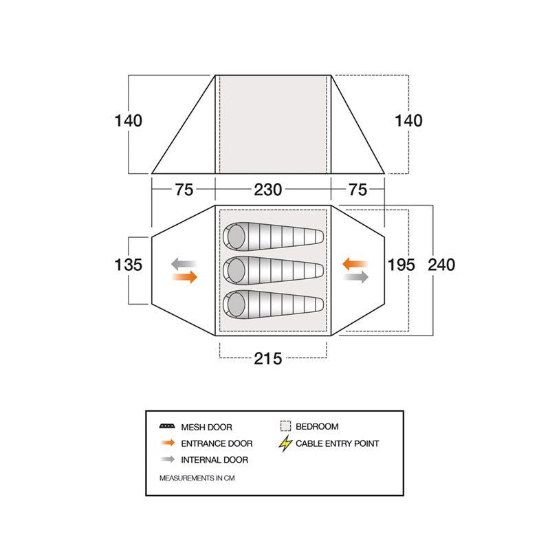 - The Vango hub structure is a unique device meaning it is easy to pop up and simple to take down, this will make your camping trip stress free.