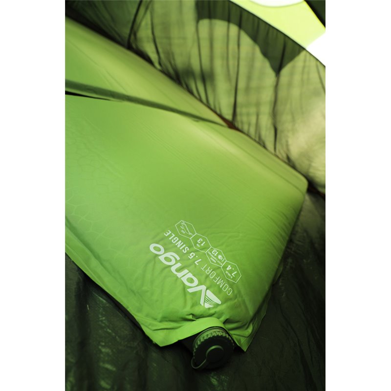 The luxurious Vango Comfort 7.5cm self-inflating sleeping mat offers unrivalled comfort and convenience. Designed with a stylish, soft-touch flocked finish top and durable non-slip base and Cyclone Flip Valve, inflation and deflation are very quick. Simply flip open the valve and watch the mat expand. Prefer a firmer mattress? Simply top it up with a few extra puffs of air. After a great night's sleep, the Cyclone valve's large opening means the air evacuates quickly, making packing away really easy.