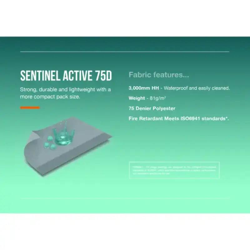 - Sentinel Active 75D Fabric & Vango PowerFlex Poles: Lightweight, waterproof fabric with a 3,000MM HH rating, paired with strong, reliable fibreglass poles.