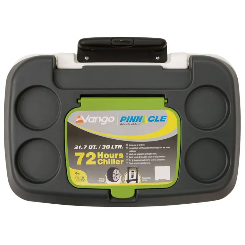 The Vango Pinnacle Wheelie 30L cool box is ideal for picnics, parties or camping trips. Able to hold 46 cans, you are sure to fit everything in. Its insulated body with polyurethane foam helps keep food and beverages cold for up to 72 hours. It features a telescopic handle and sturdy wheels for easy transportation.